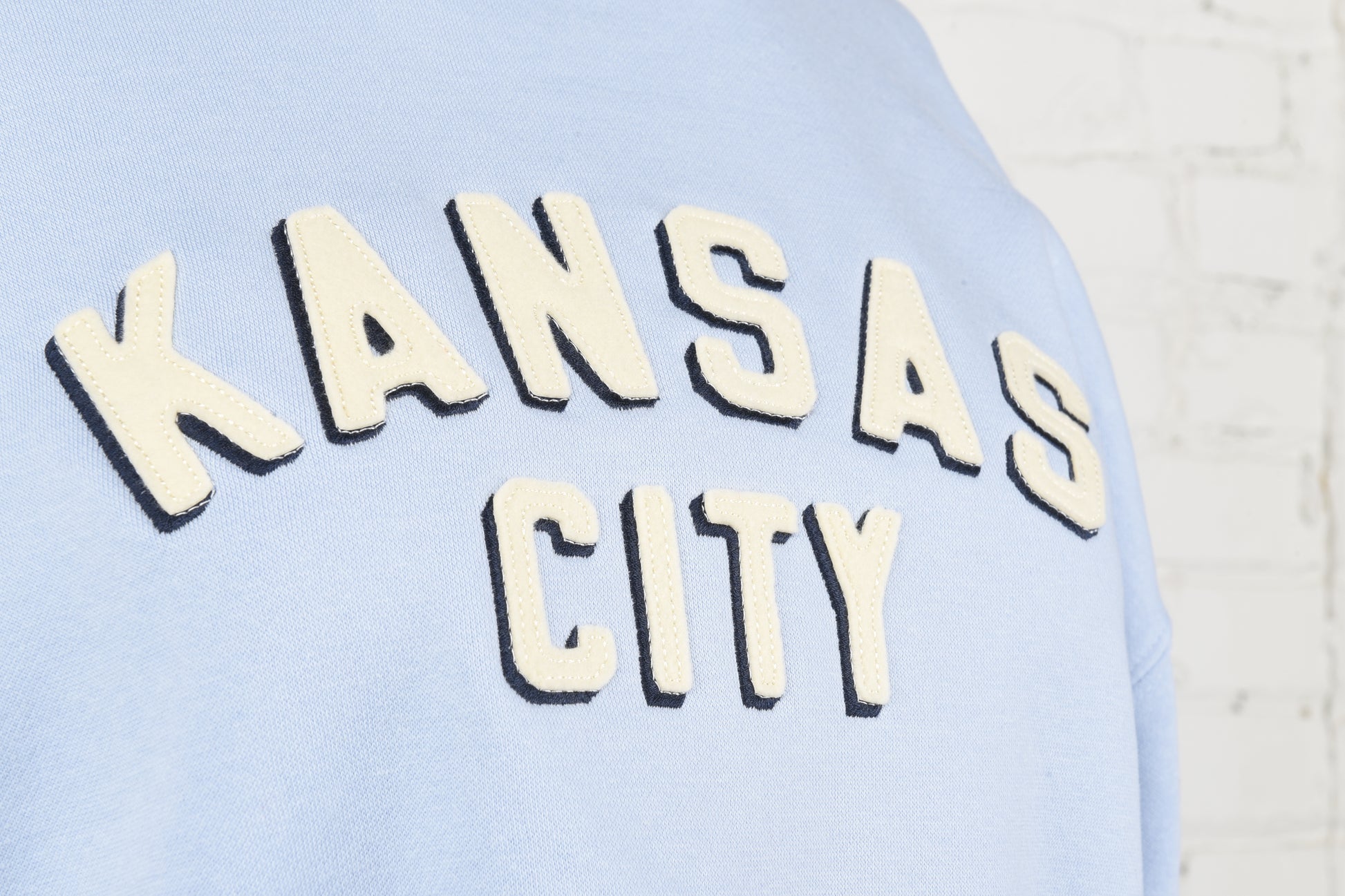 This Crewneck will be your wardrobe staple. It's varsity inspired, extremely comfortable and looks good with just about everything in your closet. It features felt appliqué in two different color combos.